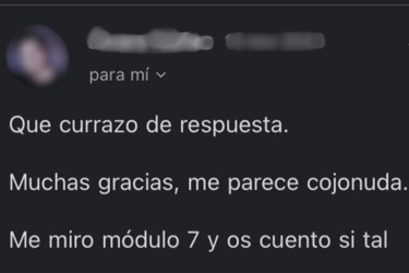 "Entré preocupado porque podían engañarme. Aprendí 10 cositas de las 100 que tienen. Y salí con un trabajo donde me pagan 12.000€ más que antes. En menos de 2 meses"
