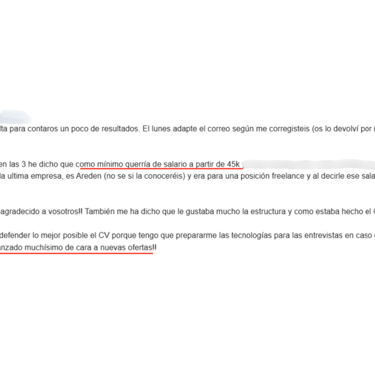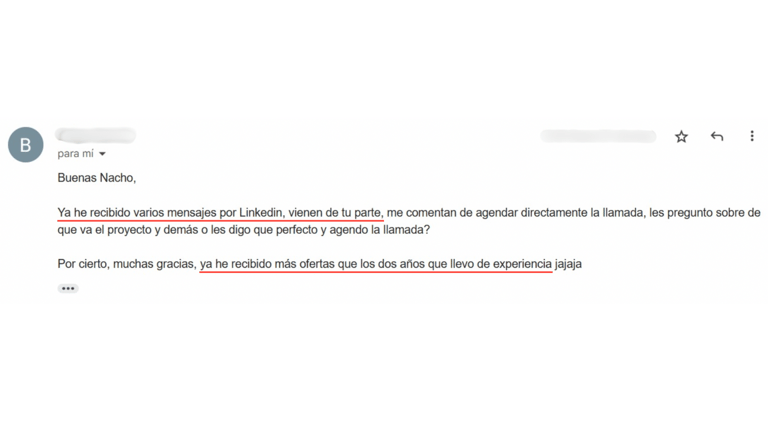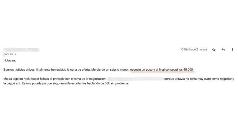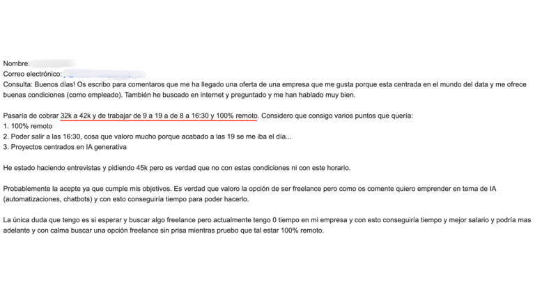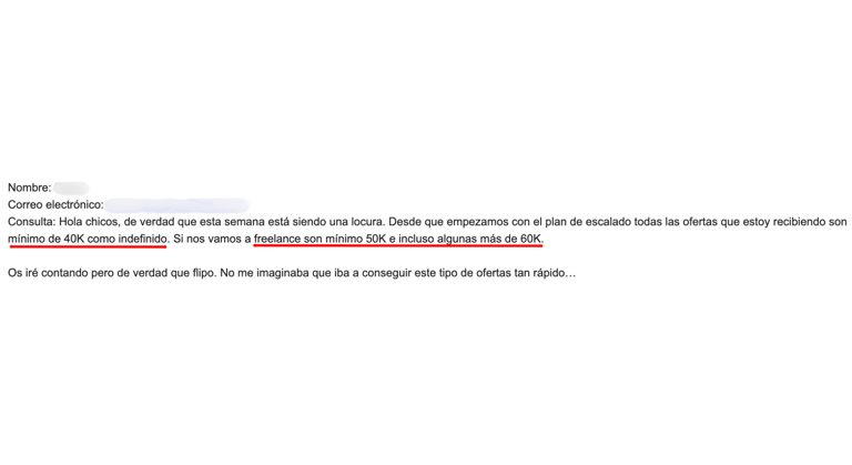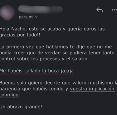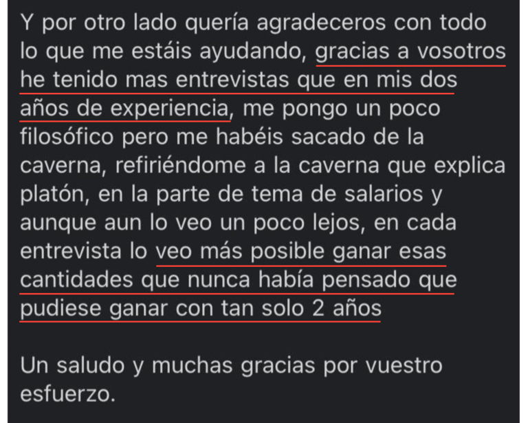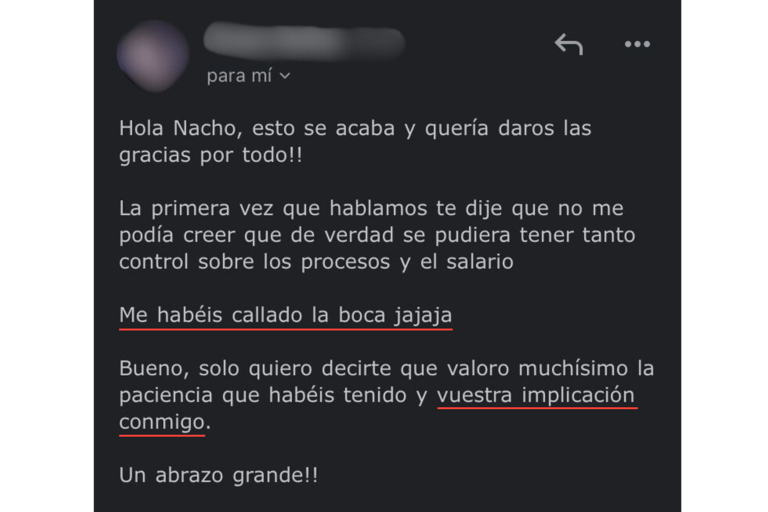 Después de 21 días trabajando con nosotros pasó de ganar 18.000€ anuales a trabajar en un proyecto más ilusionante ganando 15.000€ más