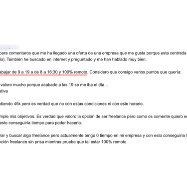 "Antes cobraba 30.000€ y trabajaba presencial. Las ofertas que me llegaban eran de máximo 35.000€. Ahora la oferta más pequeña que me llega es de 40.000€ y 100% teletrabajo"